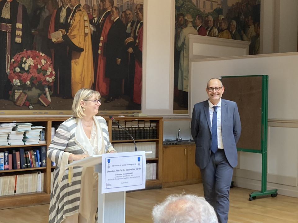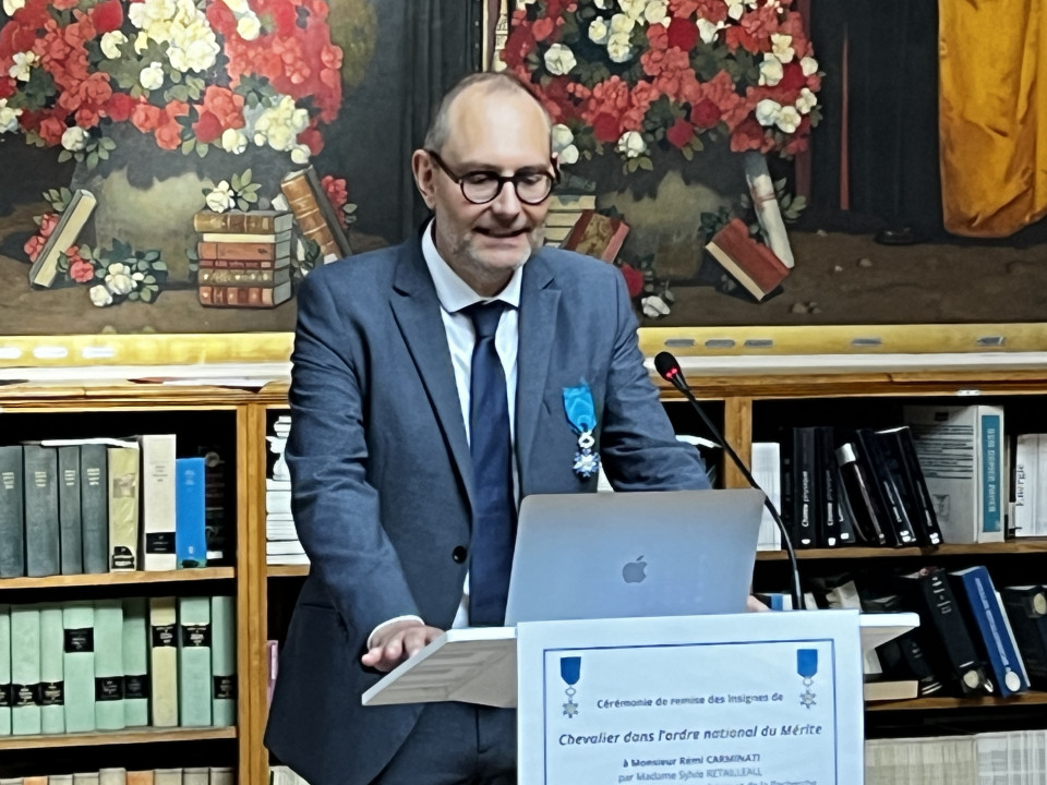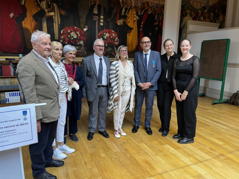 Rémi Carminati, ému, a reçu les insignes de "Chevalier dans l'ordre national du Mérite" des mains de la Ministre. Dans son discours de remerciement, il a exprimé sa gratitude pour cet honneur prestigieux, le partageant avec toute sa famille, ses proches, ses amis, ses collègues et toutes celles et ceux qui l'ont accompagné tout au long de sa carrière.