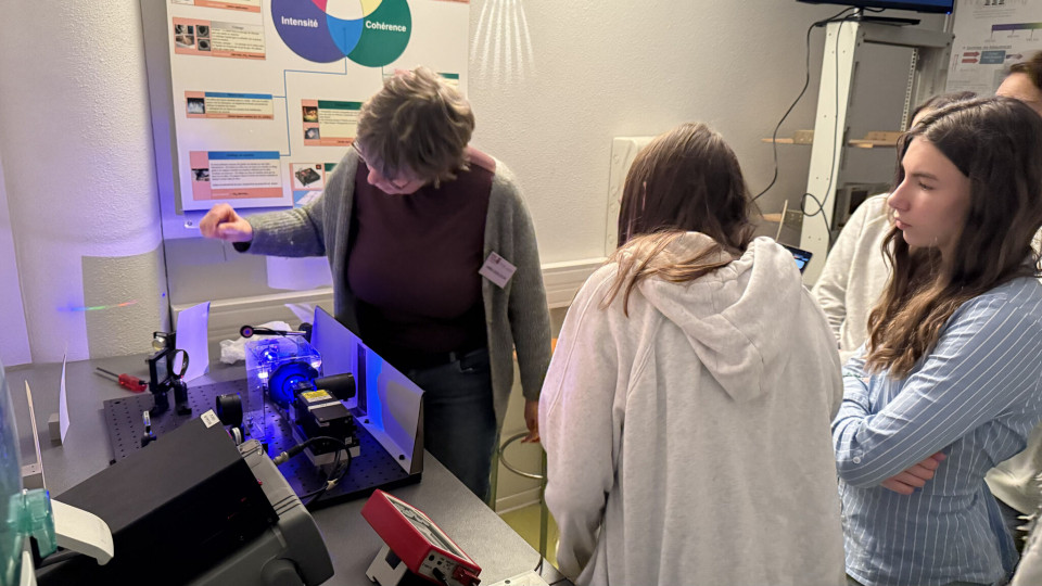 Les discussions se sont poursuivies de manière informelle autour d’un goûter, avant de visiter des expériences de photonique du Laboratoire Charles Fabry et du LEnsE (Laboratoire d’Enseignement Expérimental) présentées par des femmes !