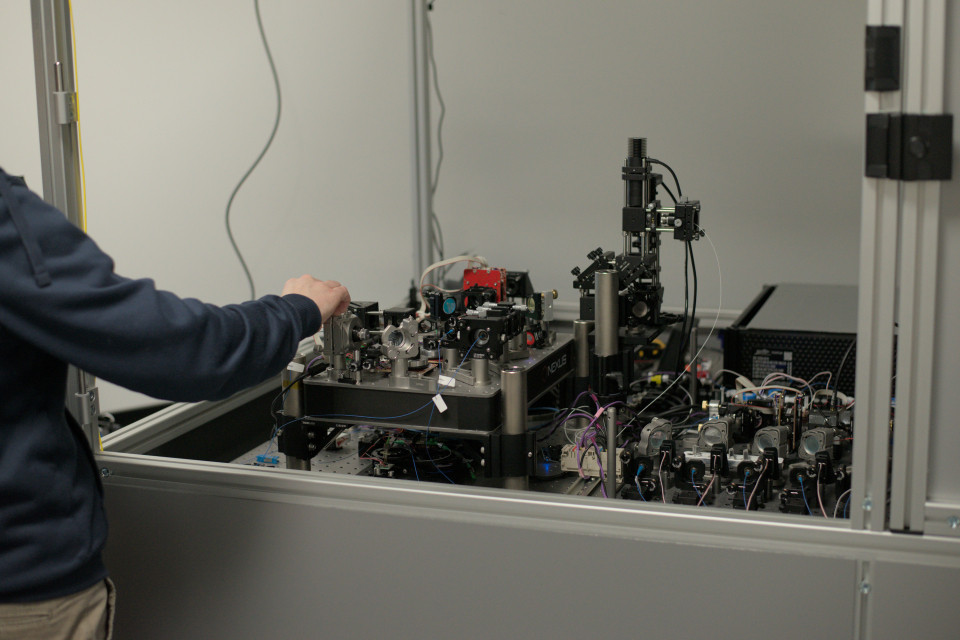 En sortie de l’interféromètre, les photons sont détectés par des détecteurs de photons supraconducteurs ultra sensibles, capables de détecter un photon avec une précision de l’ordre de la picoseconde.