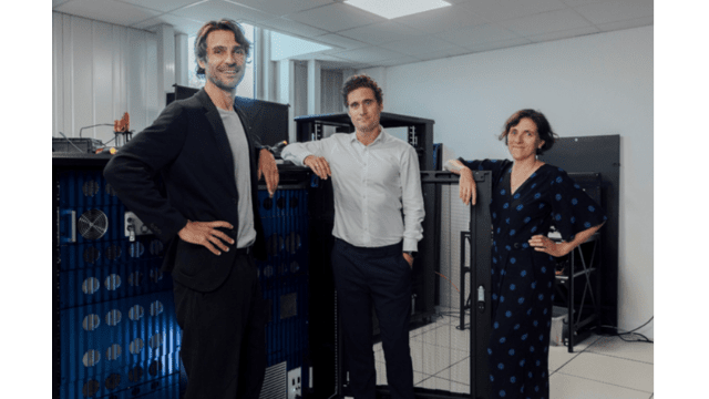 De g. à dr. : Les fondateurs de Quandela : Niccolo Somaschi, Valérian Giesz, Pr. Pascale Senellart