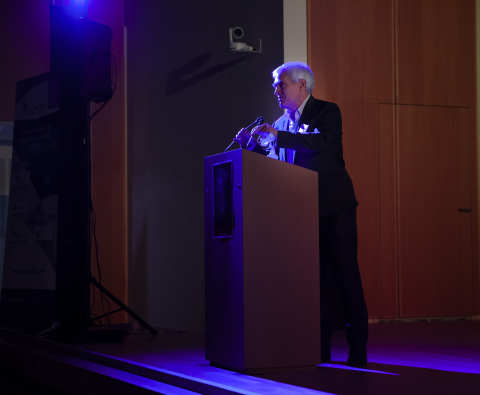 Une cérémonie forte en émotions où se sont succédés des moments solennels avec les interventions de Pierre Paul ZALIO (Président de l'École Normale Supérieure Paris-Saclay), Jean-Louis MARTIN (DG de l'Institut d'Optique Graduate School), Riad HAIDAR, promo 99, (DG adjoint à l’enseignement de SupOptique), Philippe METIVIER, promo 82, (Directeur technique de LUMIBIRD), et François-Hugues GAUTHIER, promo 76, (Président de SupOptique Alumni) ;