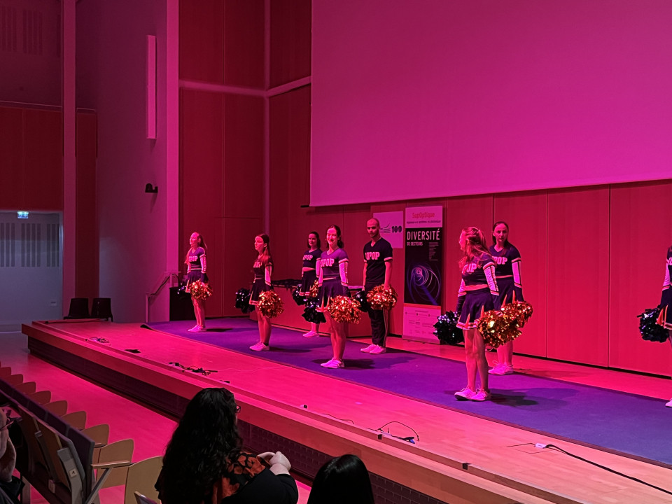 Après une douce improvisation au piano par Gabriel Morel (26) pour laisser les invités s'installer, cette cérémonie a débuté par le traditionnel Show laser si bien orchestré par le LaserWave, suivi du Cheer SupOptique, toujours plus acrobatique !