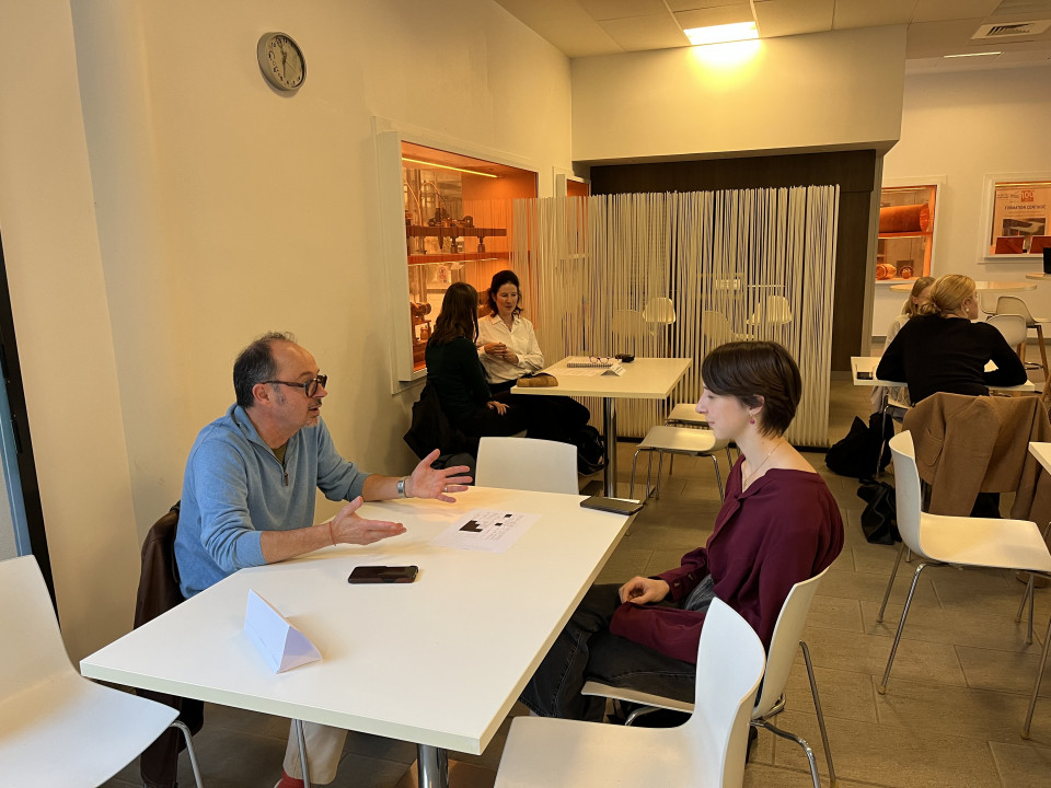 Dans une ambiance conviviale, une rencontre entre étudiants et alumni de l’Institut d’Optique s’est tenue le 13 octobre dernier dans la cafétéria de l'Institut d'Optique à Palaiseau. Cet événement, organisé par Nathalie Westbrook (86) et Christine Chanteloup, avait pour objectif de découvrir différents types de postes occupés par les anciens élèves de l'École, l'occasion encore pour la trentaine d'élèves qui s'étaient inscrits de s'interroger sur l'après SupOp, de favoriser les échanges intergénérationnels et de renforcer les liens au sein de la communauté.