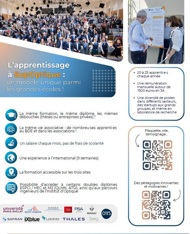 Vous ou votre entreprise, avez-vous pensé à recruter en apprentissage un étudiant de l'Institut d'Optique à la rentrée 2025 ?